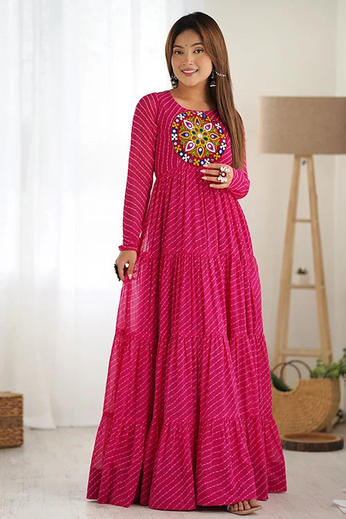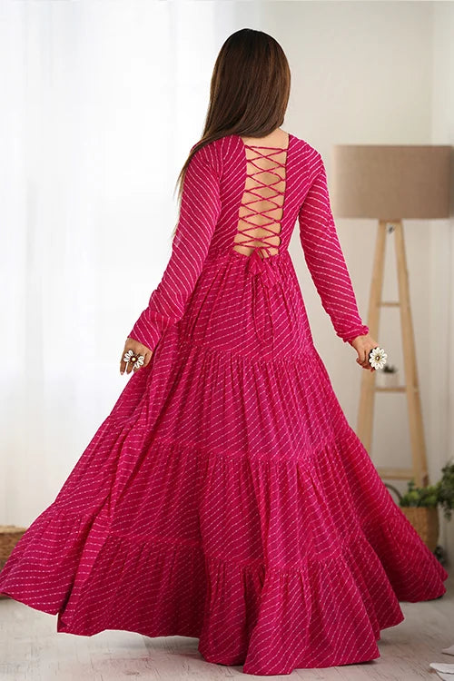 Pure soft fox georgette laheriya print fabric fully flair anarkali fully sttiched gown ready to wear.
