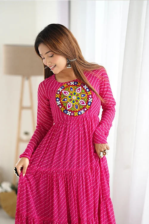 Rani Color Georgette Laheriya Print Anarkali Gown Collection.